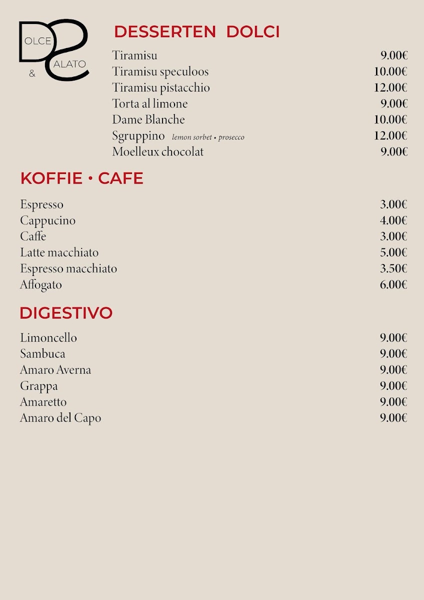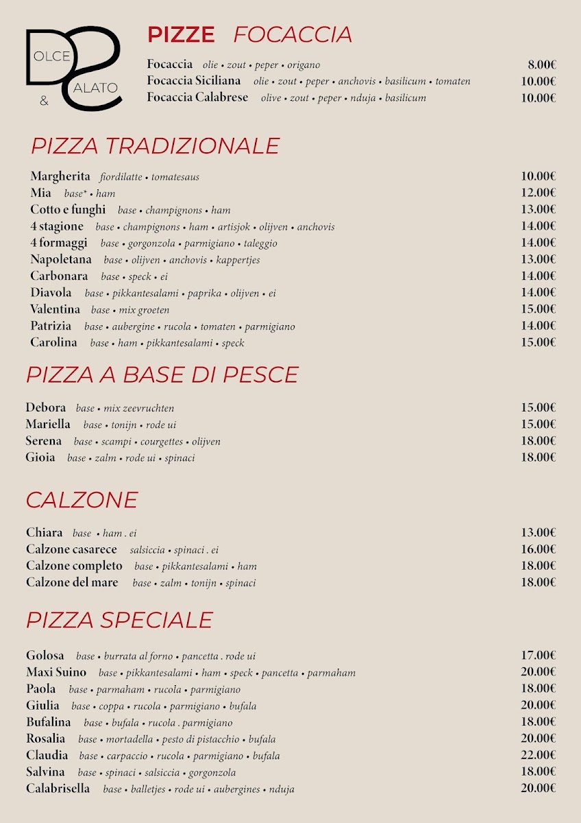 The overall menu at Dolce E Salato blends the best of traditional Italian cuisine with a focus on fresh, high-quality ingredients. From the warm, inviting starters to the hearty pizzas, every dish is crafted to offer a memorable dining experience. The well-curated selection ensures that there's something for everyone, whether you're in the mood for a light snack or a filling meal.