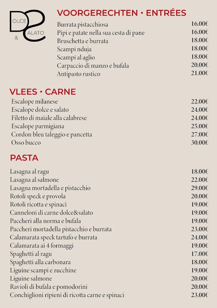 The menu at Dolce E Salato in Sint-Pieters-Leeuw offers a delightful range of traditional Italian dishes with a modern twist. Among the standout items are the Bruschette, a perfect appetizer to kickstart any meal. Served with a variety of toppings, these crispy slices of toasted bread are packed with fresh ingredients that highlight the restaurant's commitment to quality.